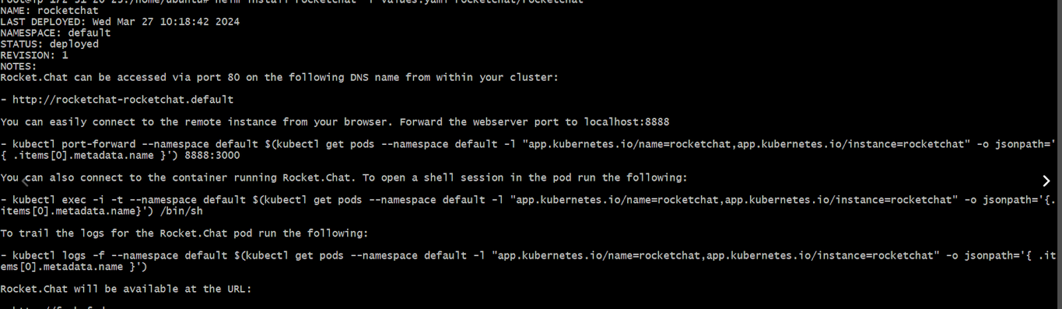 helm install rocketchat -f values.yaml rocketchat/rocketchat